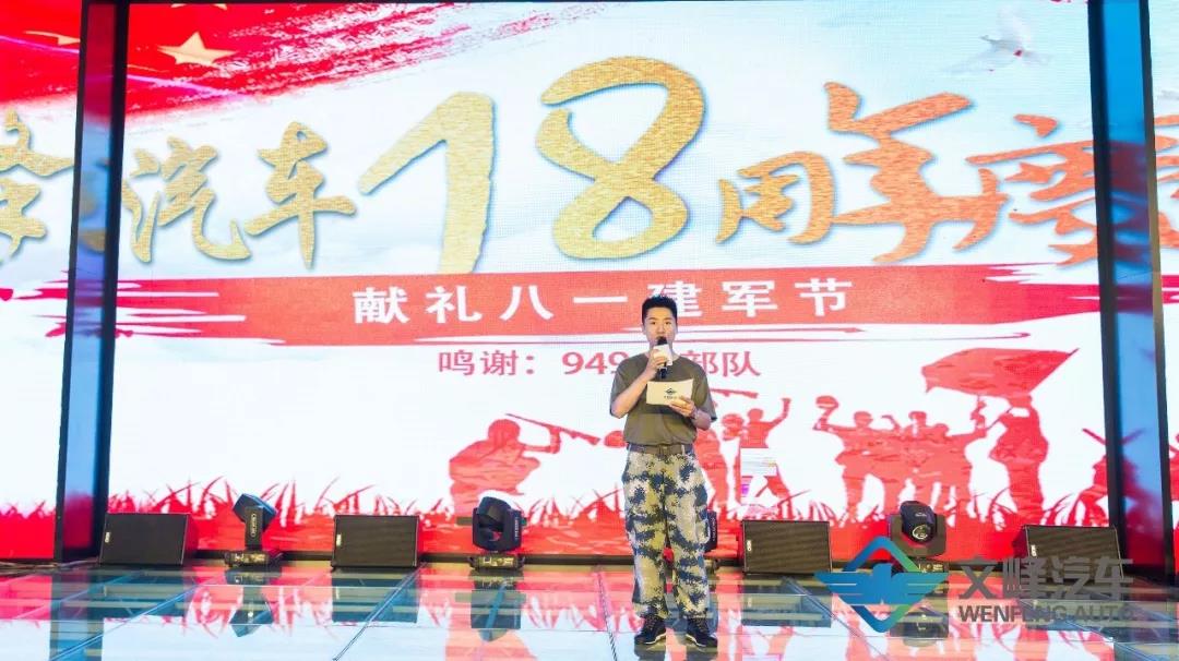 2019年8月1日,文峰汽車精英與某部隊官兵代表集聚文峰城市廣場,慶祝中國人民解放軍建軍92周年,同時也吹響了文峰汽車8·10十八周年慶特惠活動的沖鋒號角。會上,各門店管理層及銷售團(tuán)隊激情滿懷,通過拉歌、簽署承諾書、喝出征酒等表達(dá)了文峰人對周年慶活動必勝的信心和勇氣,讓炎炎夏日更添慷慨豪情。