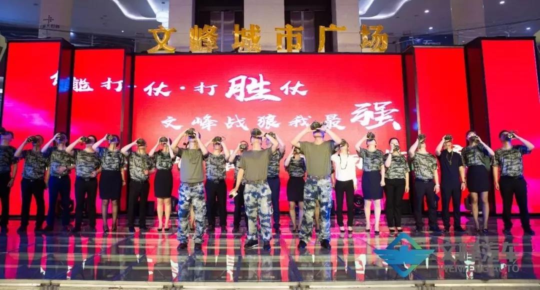 最后,文峰汽車總裁、各門店負(fù)責(zé)人再次上臺,帶領(lǐng)銷售精英共同飲下出征酒,激昂地喊出“能打仗,打勝仗。文峰戰(zhàn)狼我最強”的口號,瞬間點燃了各位精英的戰(zhàn)斗激情,現(xiàn)場再次沸騰。