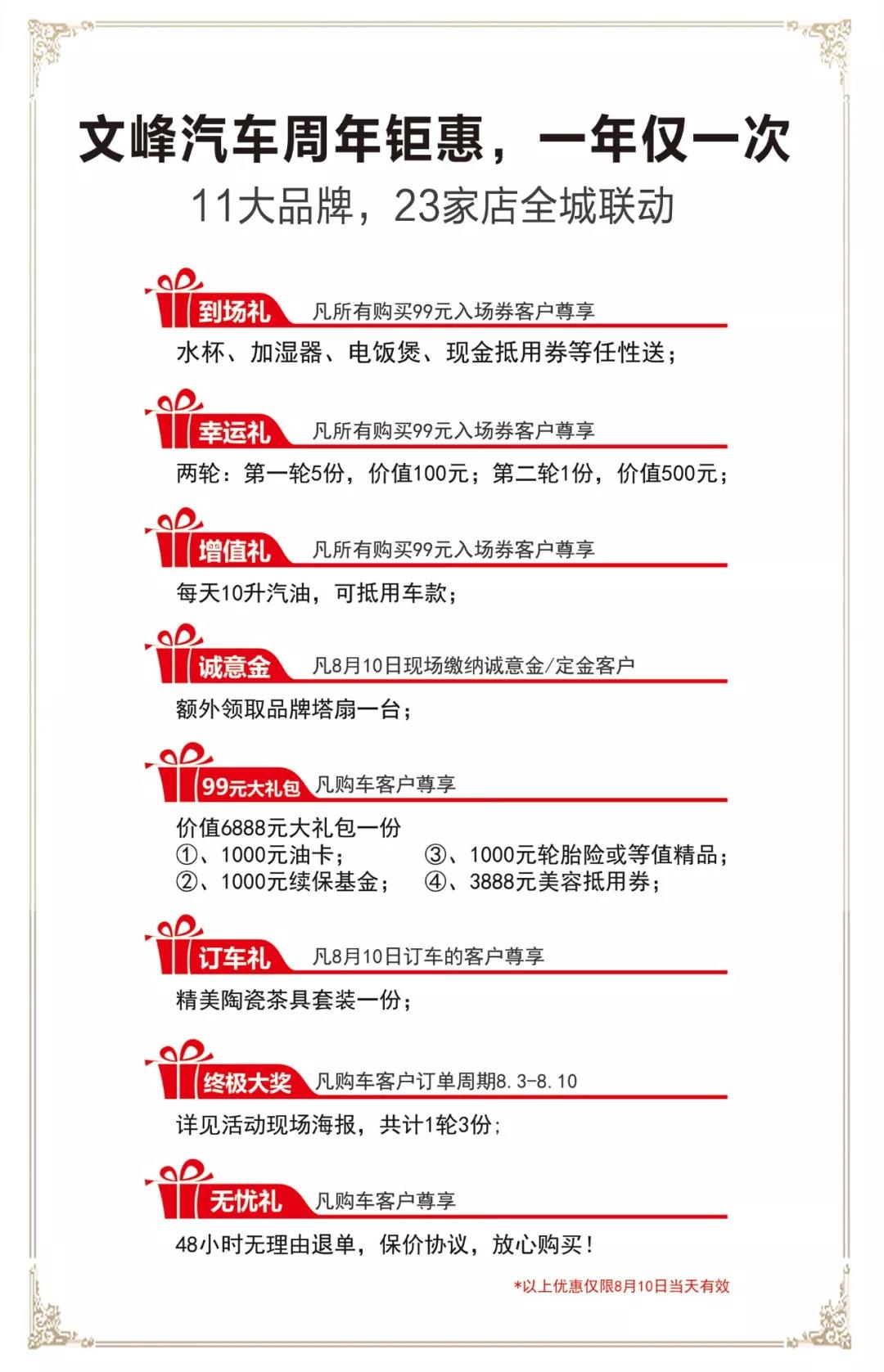 伴隨著誓師大會的圓滿成功,文峰汽車十八周年慶特惠活動正式啟動,在接下來的9天時間里,文峰汽車的精英團(tuán)隊將齊心協(xié)力,勇攀高峰,共創(chuàng)奇跡!