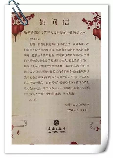 此次捐贈(zèng),除了文峰千家惠配送商品外,文峰集團(tuán)旗下另外兩家星級(jí)飯店文峰飯店和南通大飯店也參與其中,他們每周準(zhǔn)備400份半成品食材,以解決兩家醫(yī)院一線醫(yī)護(hù)人員的后顧之憂。