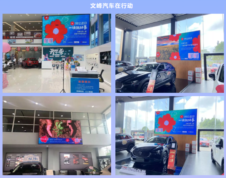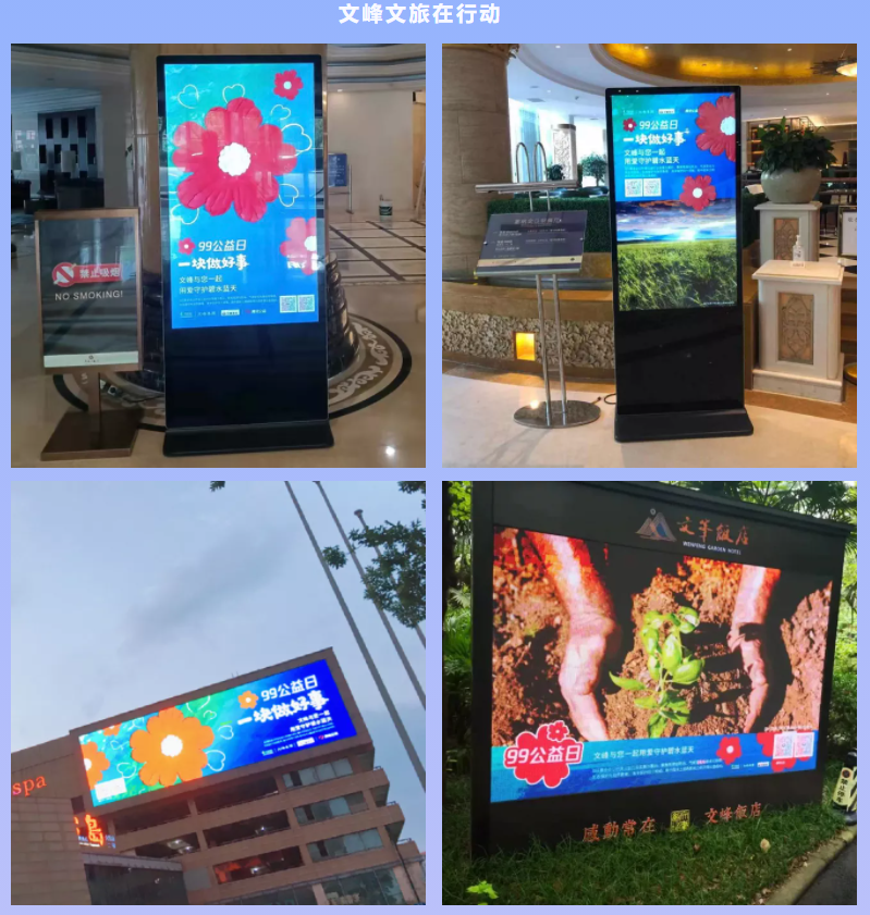 今年的“99公益日”,江蘇文峰集團繼續攜手阿拉善SEE,一起聚焦環保公益行業的發展,一塊做好事,為“勁草同行”“創綠家”兩個項目進行全力支持。集團旗下的文峰飯店、有斐大酒店、南通大飯店、南通文峰廣場、上海文峰廣場、文峰百貨、文峰電器、文峰超市以及文峰汽車等近50家門店的人流量聚集商圈,均通過戶內外LED屏或背景墻、易拉寶等渠道投放公益廣告,同時面向廣大顧客開放線下促銷活動,參與愛心捐助將有機會獲得公益日周邊。