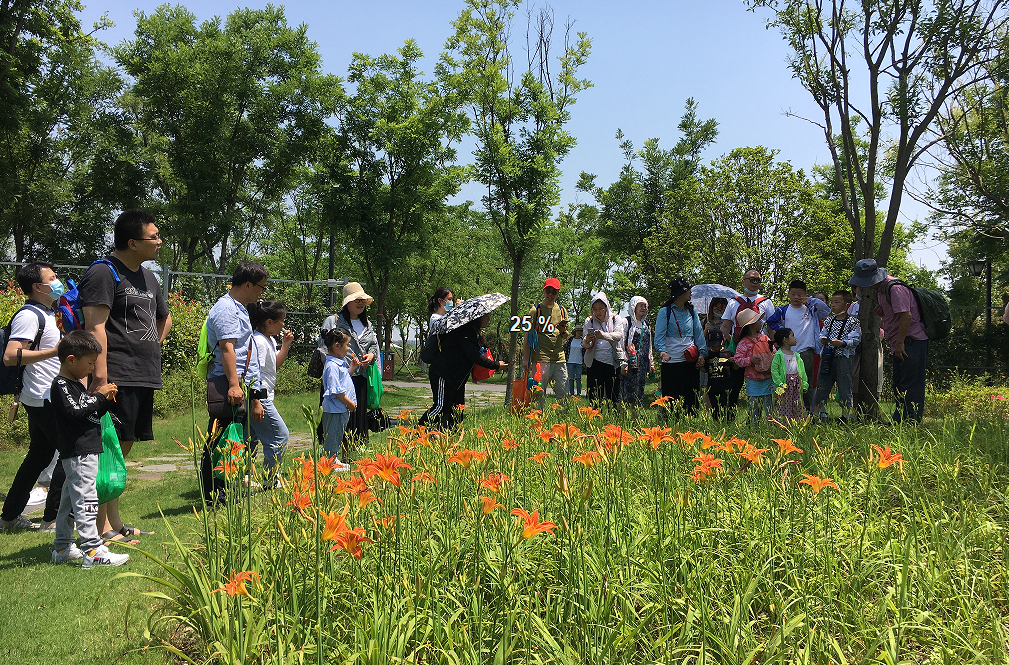 在李教授、文峰集團(tuán)志愿者和基金會(huì)工作人員的帶領(lǐng)下,小朋友們和家長前往南通植物園進(jìn)行實(shí)地考察。