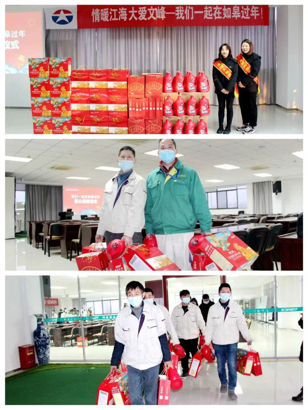 2月3日下午,如皋文峰大世界總經理吳險峰與如皋市發改委、如皋市商務局一行領導,來到位于如皋市開發區的南通斯密特森光電科技有限公司,為響應國家防疫號召而就地過年的企業員工們,送上了新春的慰問與節日的祝福,讓留在如皋過年的各地同胞們體會到濃濃的年味與溫暖的關懷。