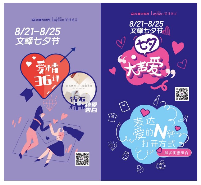 七夕期間,文峰大世界為顧客們準(zhǔn)備了豐富多彩的活動。比如有結(jié)合七夕特有的情感基調(diào),圍繞“表達(dá)愛的N種打開方式”、“描繪愛的N次怦然心動”、“喚醒愛的N重驚喜禮遇”、“啟迪愛的N種心靈感悟”、“燃爆愛的N種氛圍營造”、“提升愛的N種品質(zhì)體驗”六個方面,推出以珠寶首飾、化妝品、服飾等商品為主的七夕優(yōu)惠活動。還有結(jié)合各類超值禮遇,互動性強、接地氣的“七夕攻略寶典”狂歡派對活動,在線上還有超顏值CP直播帶貨。