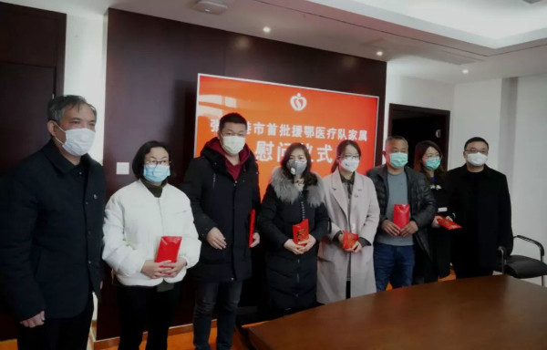 根據“愛心企業”江蘇文峰集團的意愿,市慈善總會為醫療隊隊員的每戶家庭定向捐助2萬元,共計12萬元慰問金,送到每一位家屬手中,并親切囑咐各位家屬,做好自我和家人的防護,讓援鄂隊員放心工作。