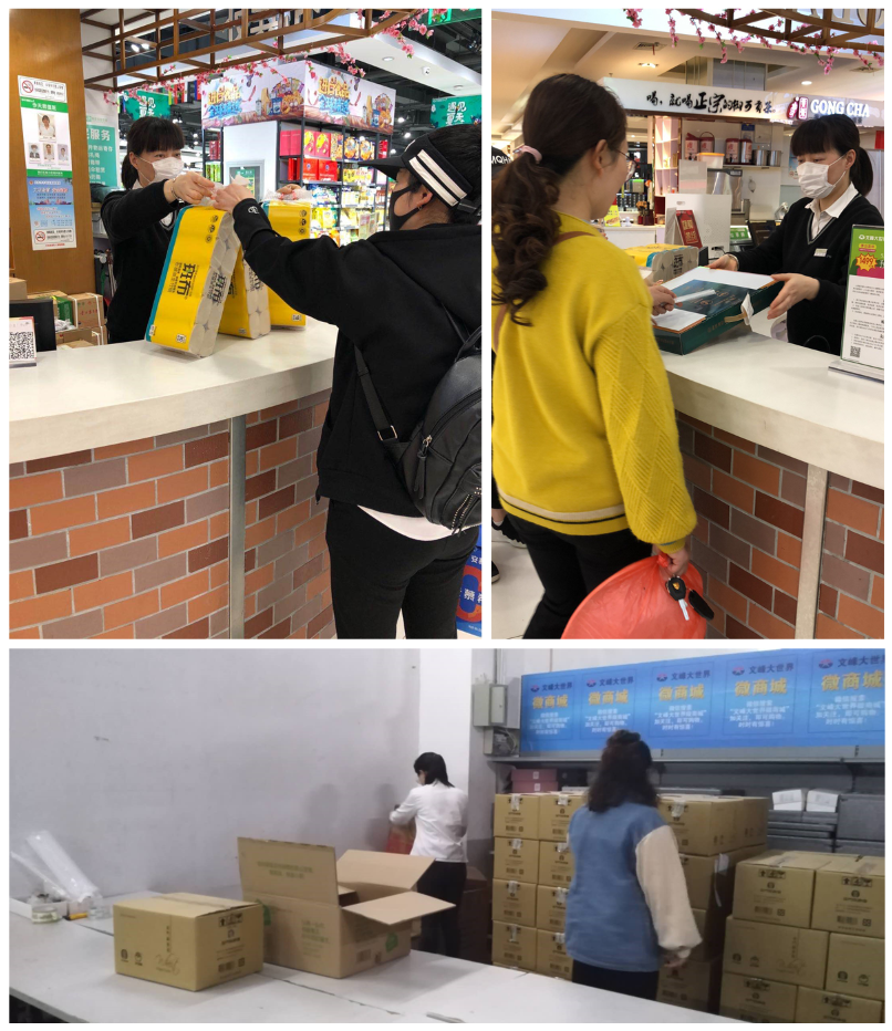 文峰千家惠微商城各網(wǎng)點的貨品打包中心,設(shè)置在線下門店內(nèi),將線上微商城和線下門店視同為一個整體,形成店倉一體的模式,保證了門店自身的靈活調(diào)整,從容應(yīng)對顧客的集中采買。